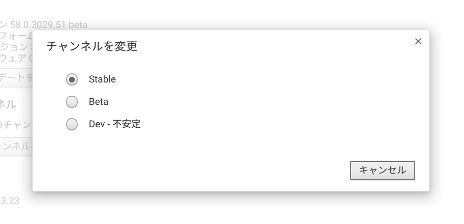 「現在のチャンネルはベータ版です。」になれば設定は完了です。