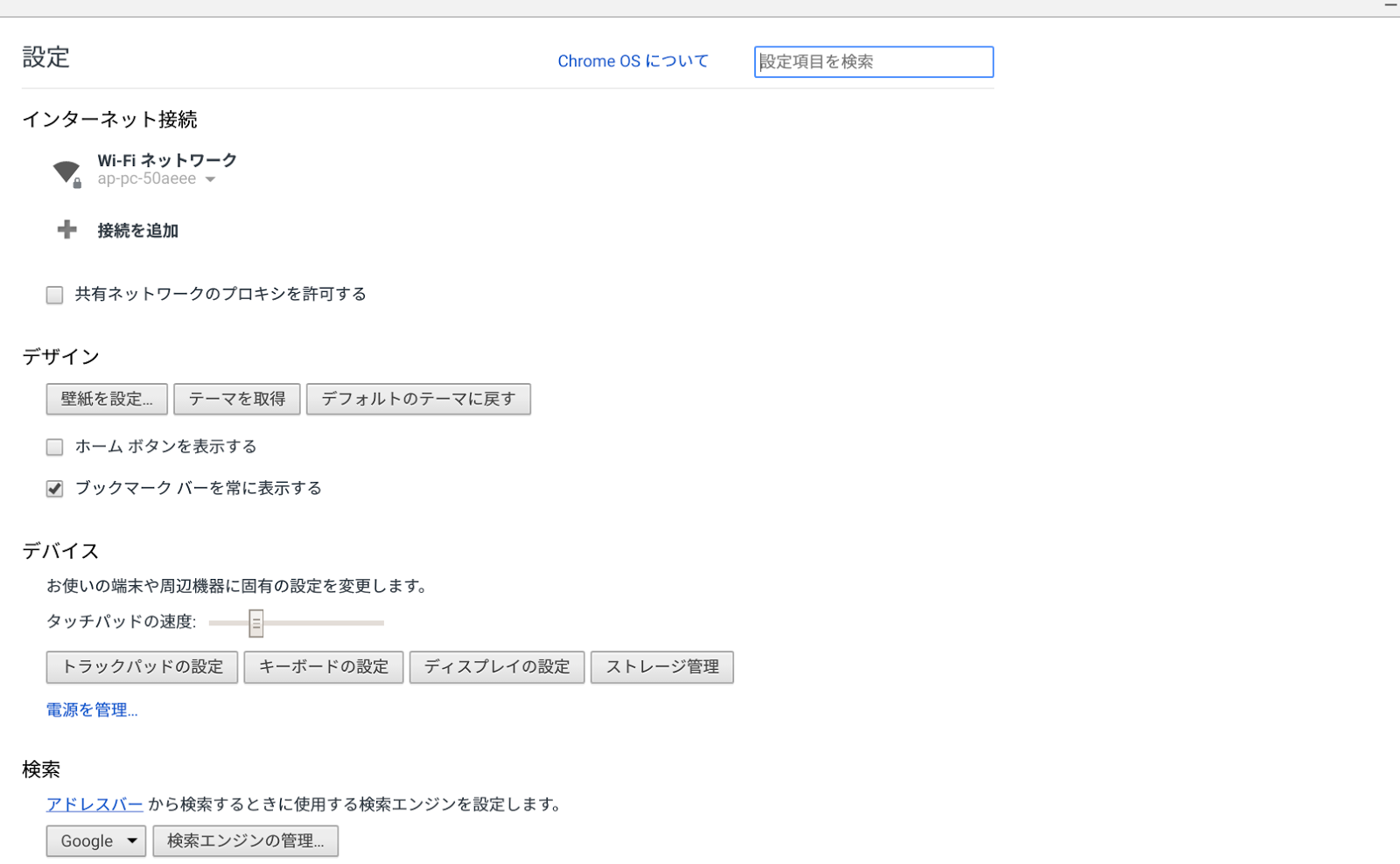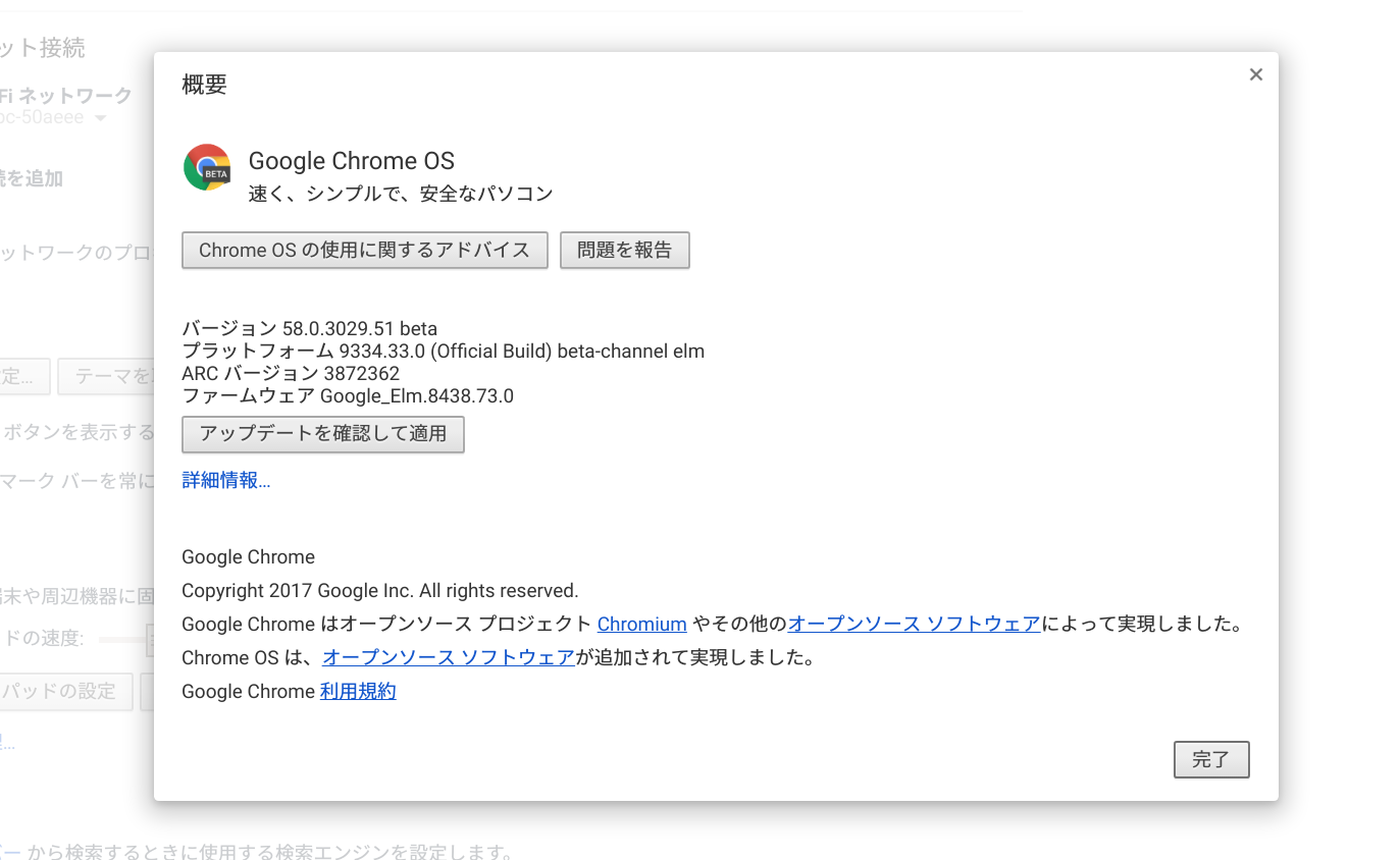 画面上の「ChromeOSについて」をクリックします。