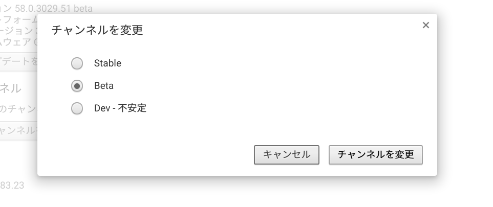 「Beta」に変更。そして「チャンネルを変更」をクリック。